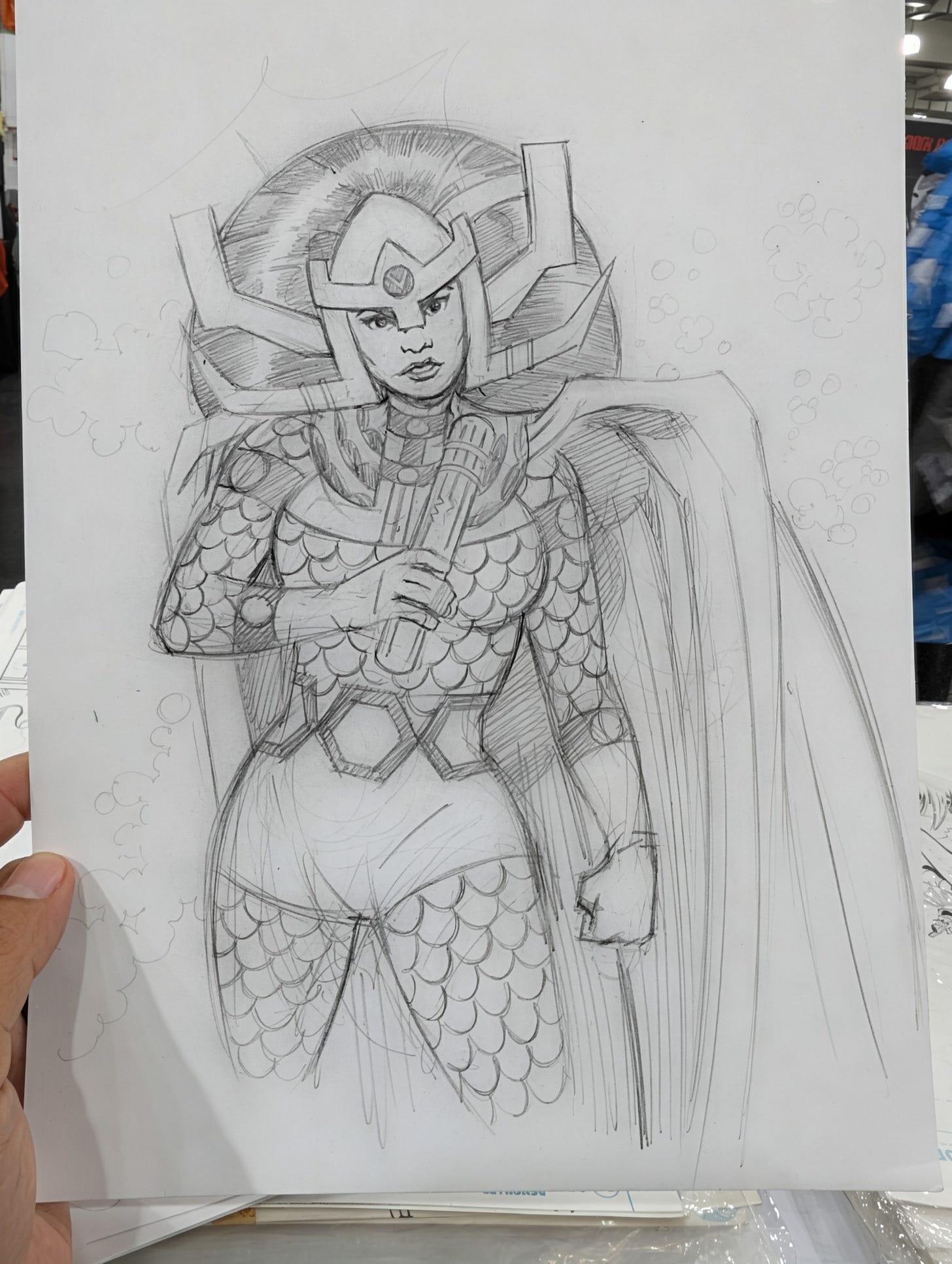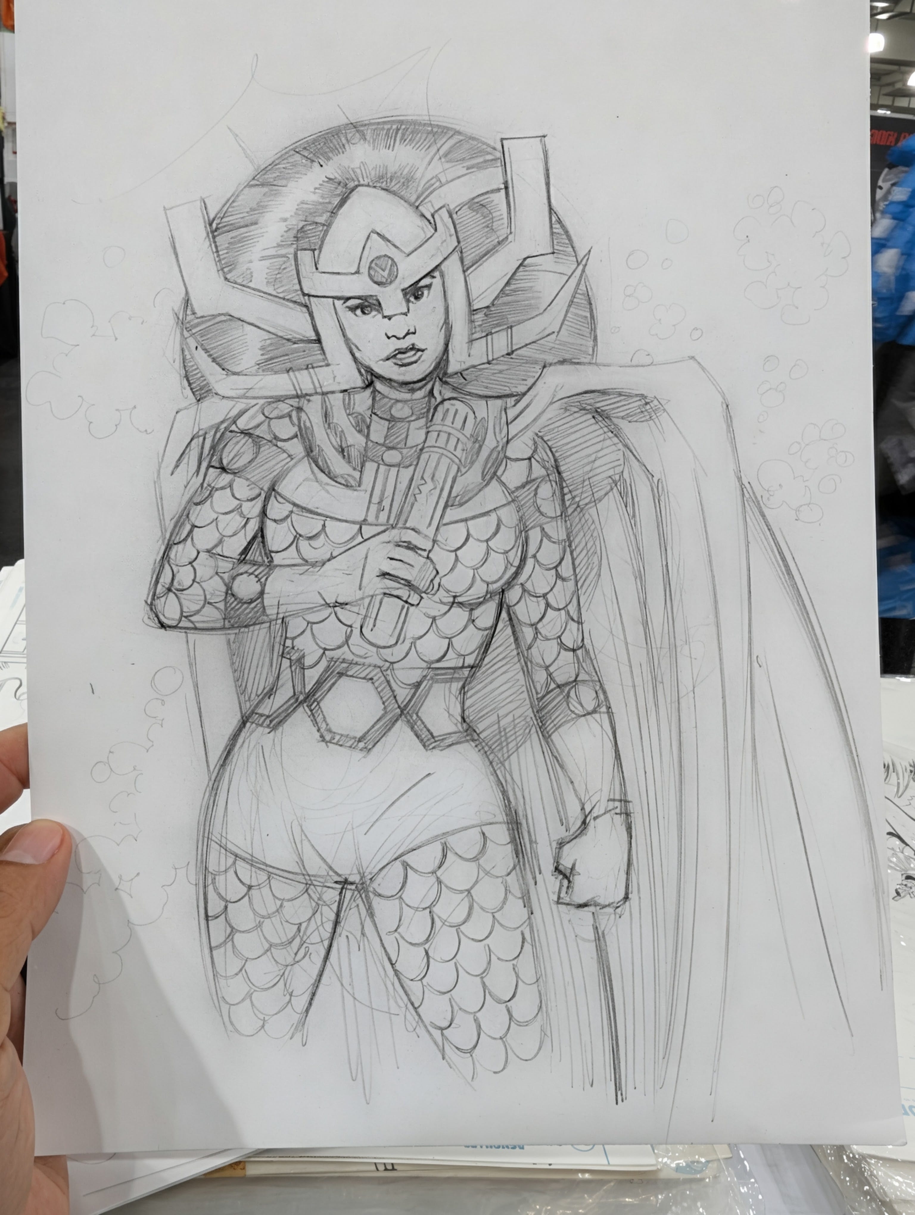 Big Barda. I don't usually do Jack Kirby characters, but… someone at NYCC or Baltimore mentioned Barda and, sure! I don't know how Kirby would come up with these costumes… Not exactly sure how the collar and cape work. I'll have to pull out more reference!